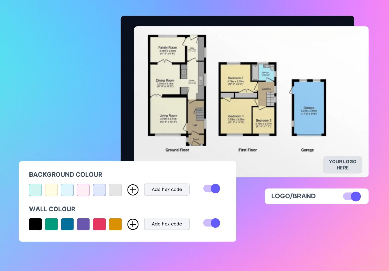 Yes and more! In fact there are over 65,000 combinations of colour, 3D, compass or furniture addition, background colour and logo position available so that you can ensure a unique feel to your listing. Simply set your preferences and PropertyBox will apply them to all floor plans to ensure consistent brand identity for your agency (some options only available on Pro plans).